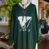 A timeless athletic-inspired long sleeve jersey in deep green. Perfectly relaxed with a sporty edge, this piece is made for layering on cool days or rocking solo with your favorite denim. The breathable fabric and oversized L/XL fit keep it comfy while the bold color makes it a standout everyday essential.