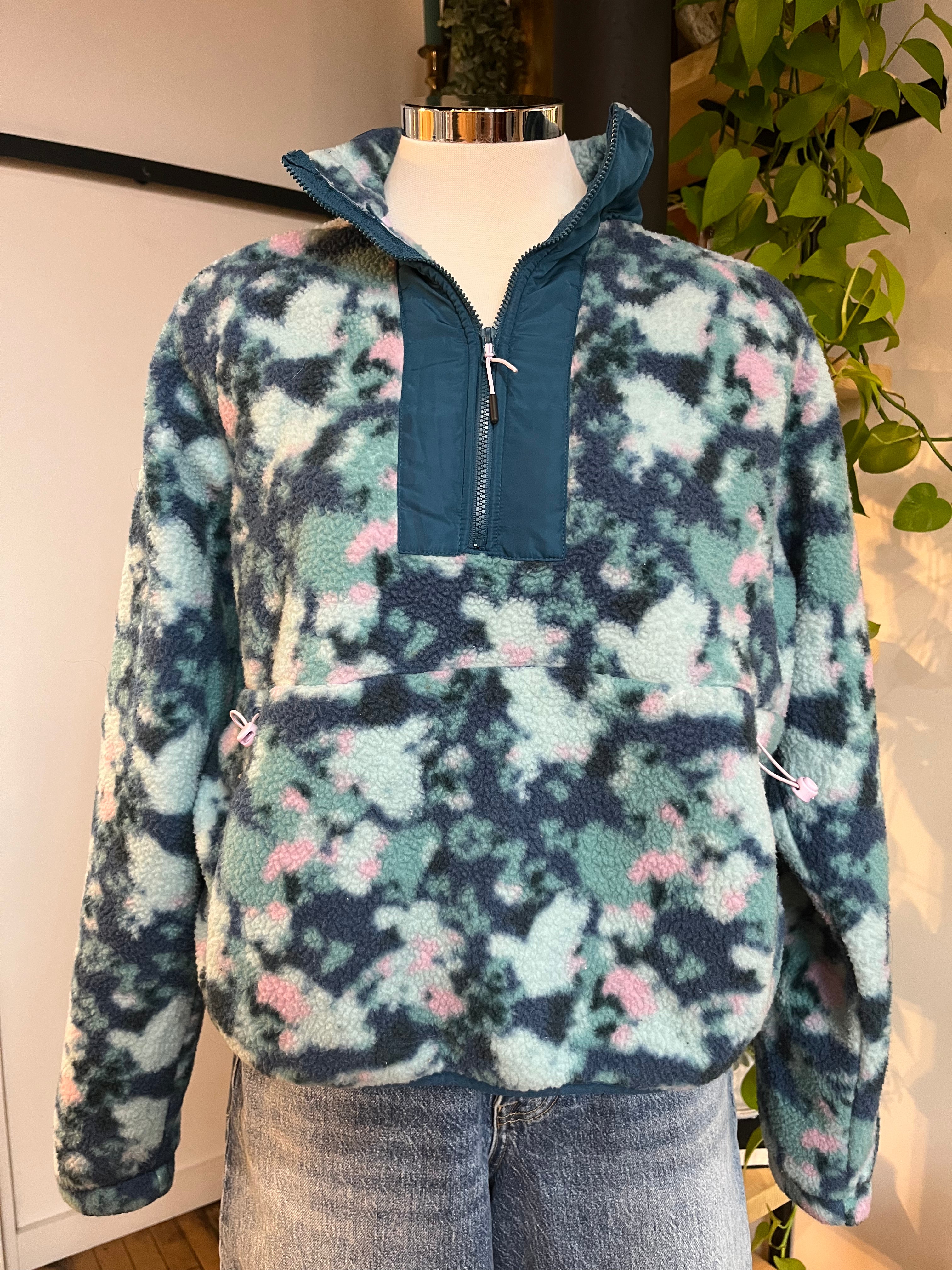 An adorable lightweight sherpa pullover by Etonic with a cozy feel and relaxed fit. Perfect for layering on cooler days or throwing on with leggings for an easy, comfy look.
