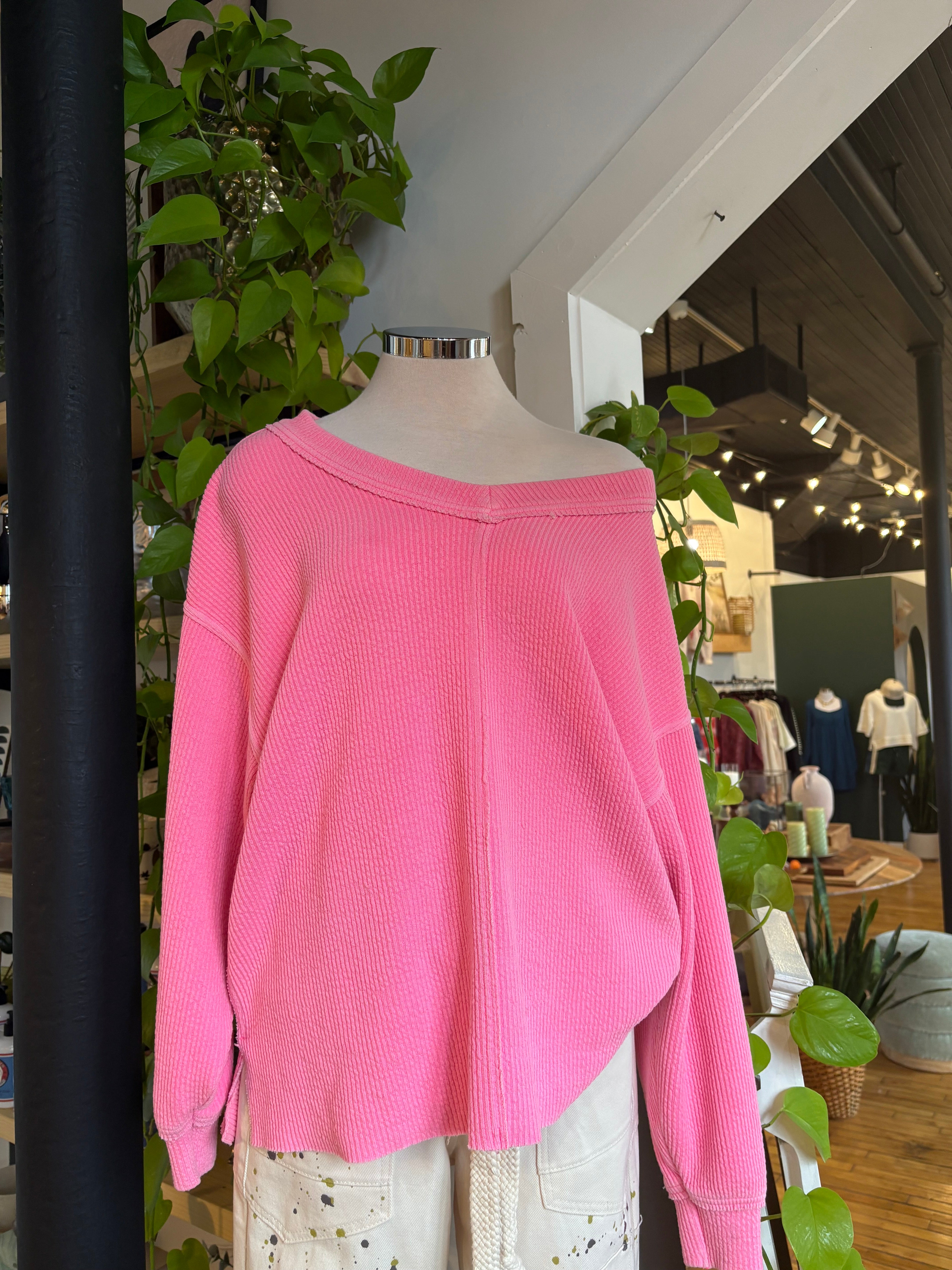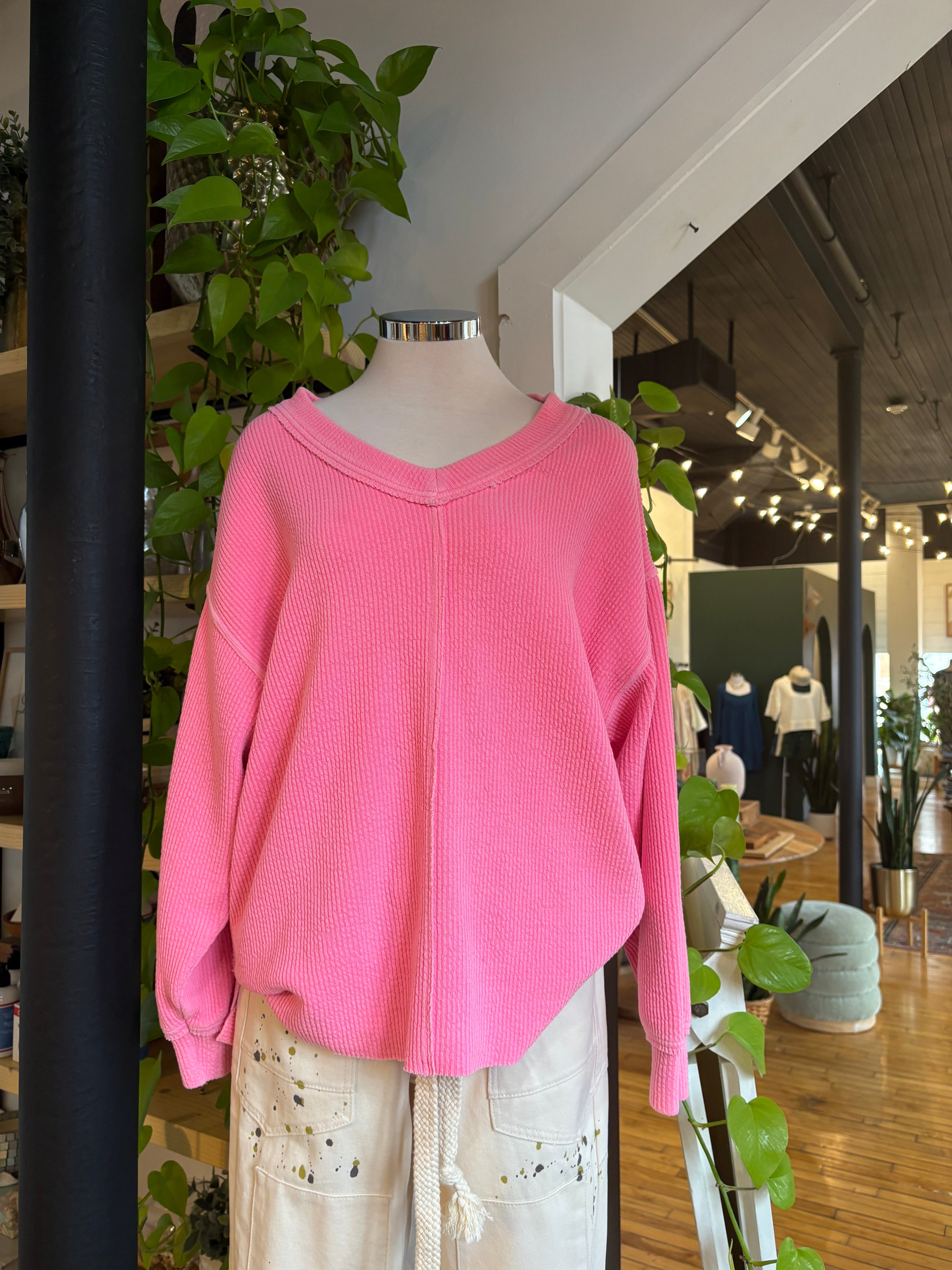 Aerie Pink Ribbed Oversized Sweatshirt – Size Small